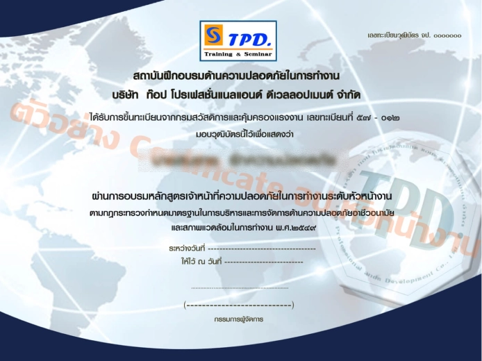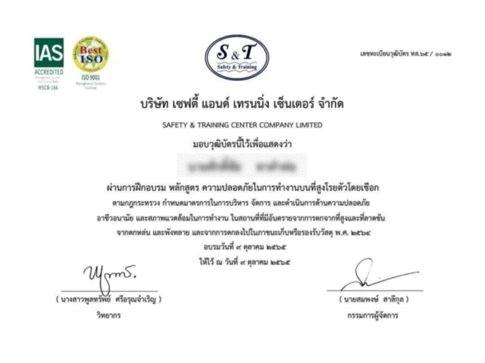 เอกสารผ่านการอบรมการทำงาน บนที่สูง
