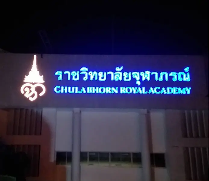 มักใช้อักษรโลหะแบบแยกชิ้น (Channel Letters)